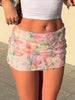 Pastelkleurige bloemenrok in mini-formaat met transparante chiffonstof en 3D bloemapplicaties. De A-lijn pasvorm en kleurrijke details maken deze rok ideaal voor zomerse festivals of creatieve partylooks.